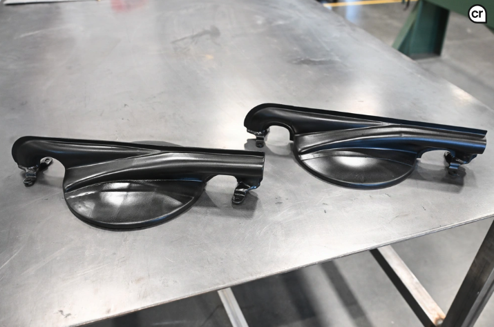 A 3D printed turbosupercharger cooling cap for a B-24 Liberator sits beside the original part at the Hill Aerospace Museum, Hill Air Force Base, Utah, Sept. 12, 2025. The museum’s restoration facility purchased 3D scanners and printers to support in-house preservation when original parts cannot be found.