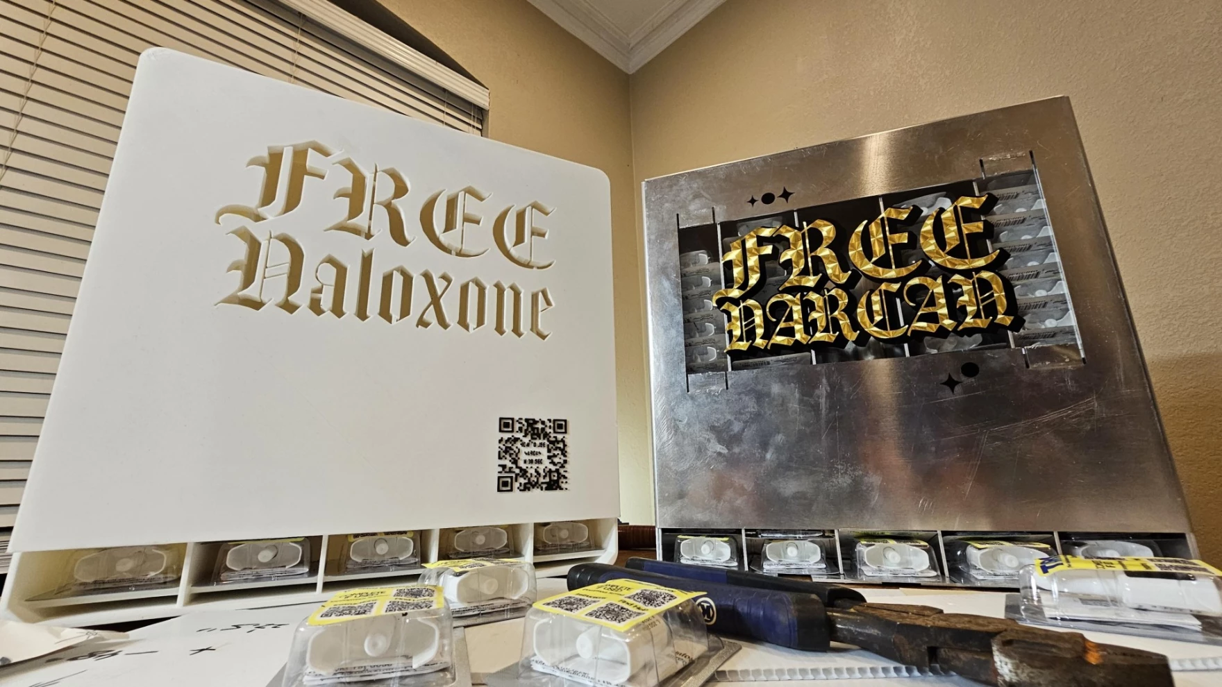 Newly designed 3D printed Narcan vending machines offer free doses of naloxone. The compact wall-mounted models are part of an expanding overdose prevention effort led by North Texas nonprofits. Image courtesy of Anthony Delabano.